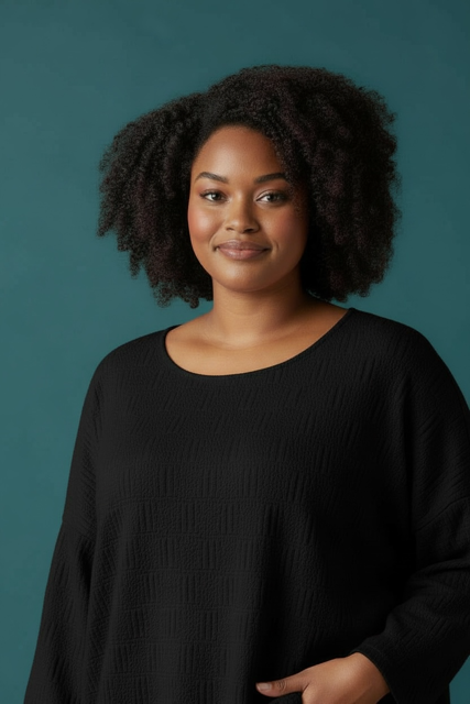 Zachte top met patroon 40-48, zwart