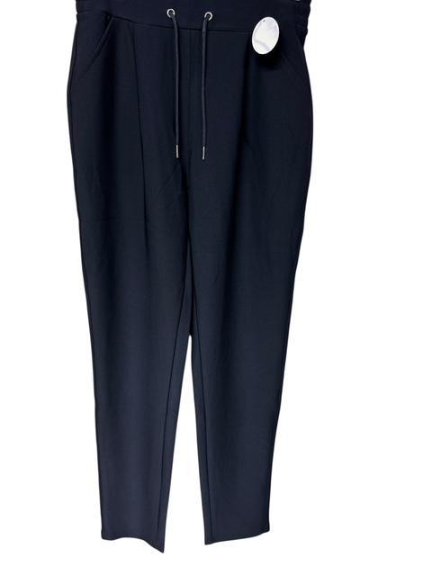 Travelstof broek met hoge taille (4 st.), donkerblauw
