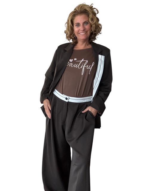 2-delige set 1x blazer met bies 1x pantalon met ritssluiting en 1 knoopsluiting