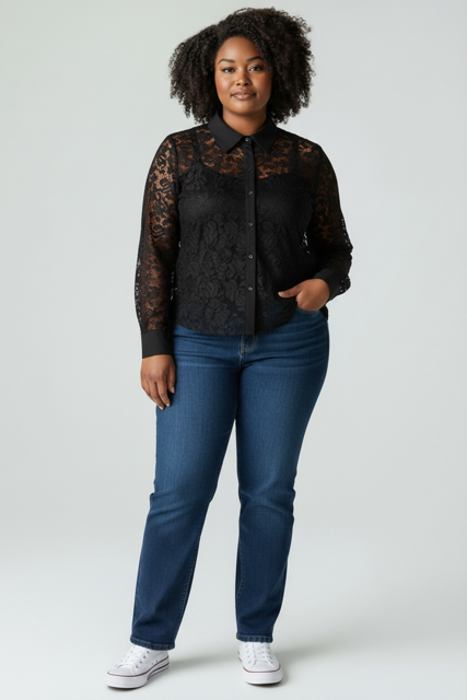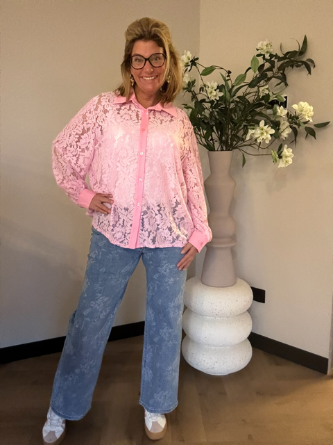 Kanten doorknoop blouse
