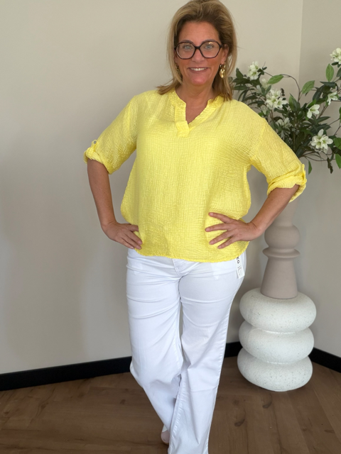 V-hals top van wafelstructuur stof